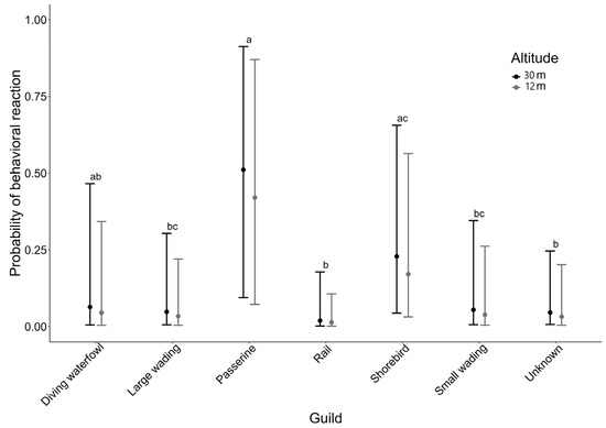 altitude = 0.37 ± 1.05). Significant differences existed in bird behavioral reactions across guilds (