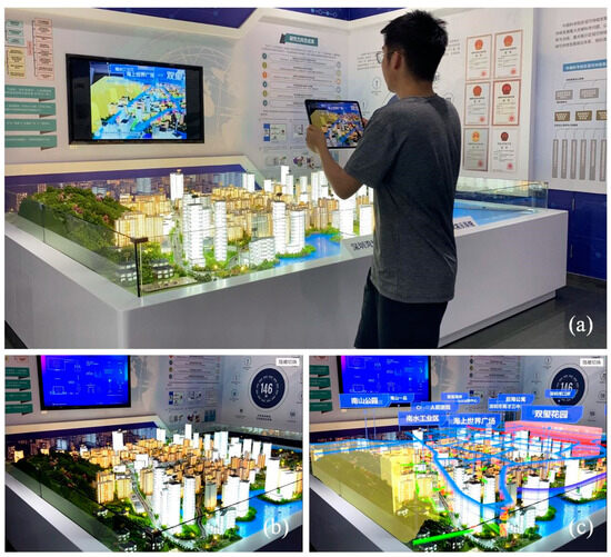 The AR sandbox developed in recent years has replaced the traditional AR card or AR, and become a powerful tool in the fields of education and geographic design. At first, it consisted of a table as the carrier of a virtual sand layer to display virtual terrain [2], and then, based on the terrain landscape formed by real sand, it displayed virtual contour information [17]. Three-dimensional printing technology has greatly reduced the cost of making 3D models, and is becoming an important way to build AR sandboxes. Gong Jianhua et al. proposed to enhance the process visualization method in the geographical environment, print out the geographical environment models such as buildings and mountain models, and superimpose the virtual fire emergency evacuation process on the building model [18], as well as providing a virtual simulation of flood diffusion effect in the mountain model [3]. Tuzun et al. [19] superimposed 3D virtual architectural models on Lego models to elaborate future scenarios. The AR sandbox provides a novel way to express and study different geographical developments and phenomena in real time. More and more evidence is showing that AR sandboxes are beneficial to improve users’ spatial thinking [20]. However, most of the visualization methods mentioned above aim to miniaturize the physical environment objects into a small-scale sandbox or other carriers. The level of detail in the displayed virtual information is limited by the size of the sandbox, and it is usually impossible to observe from multiple angles and distances.