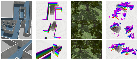 In this paper, simulation experiments of the algorithm based on flying corridors are conducted based on indoor corridors and outdoor wooded scenes, respectively, as shown in Figure 14.