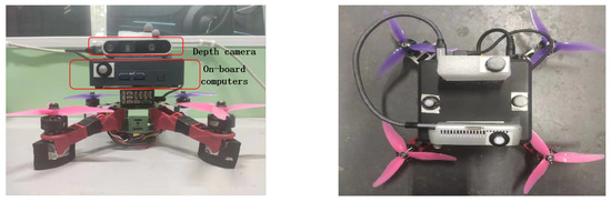 The UAV uses CUAV’s CUAV-nora+ flight control module, which has high stability, accurate inertial measurement devices, and a high and stable barometer setting. The environmental awareness, motion planning, and flight control modules run on the Intel NUC-i7 computer, which is an x86 architecture. The Realsense D435i depth camera from Intel was used in this paper. This depth camera has the advantages of a compact size and low energy consumption, and its effective distance measurement is 10 m, which meets the experimental requirements. The USB-C*3.1 interface is used to support fast data transfer.