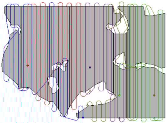 - Choset, H.; Pignon, P. Coverage path planning: The boustrophedon cellular decomposition. In Proceedings of the Field and Service Robotics; Springer: Berlin/Heidelberg, Germany, 1998; pp. 203–209. [Google Scholar]