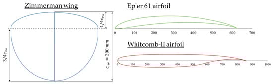 Zimmerman wing configuration (left) and airfoils (right) [23,24].
