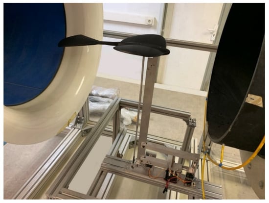 All experimental tests were conducted in a low-speed wind tunnel, specifically the WK 860060-E model of Westenberg Engineering, located at the Instituto Nacional de Técnica Aeroespacial (INTA). This wind tunnel is an open circuit with a closed circular test section with a diameter of 600 mm and a length of 1200 mm. The airflow speed within the tunnel can be regulated by a frequency variator, reaching a maximum of 60 m/s.
