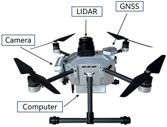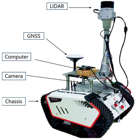 The hardware setup for this experiment consists of two unmanned ground vehicles (UGVs) and one unmanned aerial vehicle (UAV). As shown in Figure 13, the UGVs utilize the BUNKER chassis, which employs a tracked differential drive mechanism capable of differential rotation. The LIDAR sensor used is the XT32 3D laser, with a maximum range of 120 m. The UGVs are equipped with an Intel NUC11 computer, a monocular camera, and an i300 IMU. The UAV used is the Prometheus450, developed by AMOVLAB, as depicted in Figure 14. Additionally, we employ MESH network communication to enhance data transmission distance and efficiency, ensuring efficient data transfer during mission execution. Among the sensors carried by unmanned devices, GNSS (Global Navigation Satellite System) is primarily used to receive positioning information, thereby determining the three-dimensional position in the geographic space. LIDAR (Light Detection and Ranging) is a system that uses laser beams to detect targets and measure distances to objects. Laser rangefinders have highly accurate ranging capabilities, with precision reaching the centimeter level. IMU (Inertial Measurement Unit) is an inertial measurement system composed of sensors such as accelerometers, gyroscopes, and magnetometers. It is a self-contained navigation system that does not require an external reference frame, relies on external information, or is affected by weather conditions and external disturbances. IMU is used to measure object acceleration and angular velocity. The camera is primarily used to capture image data of the surrounding environment.