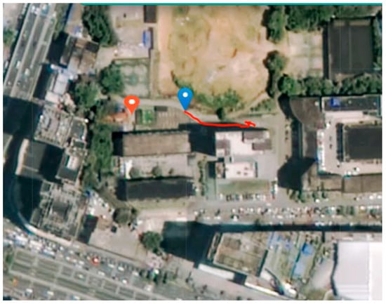 The location for this experiment is in the vicinity of a laboratory building at Wuhan University. This location offers a complex environment that provides rich conditions for the experiment. The terrain here is diverse, including various scenarios such as obstacles, bends, ramps, and tall buildings. These factors were important considerations when selecting the experimental site. The presence of diverse obstacles allows us to simulate the operation of unmanned devices in complex environments and test their obstacle-avoidance capabilities within the platform’s mission planning. The existence of bends and ramps enables us to test the stability of unmanned devices and the accuracy of navigation on different terrains. Additionally, the surrounding tall buildings provide an ideal environment to test the data transmission capability and signal stability of the platform and unmanned devices in densely populated areas. These complex environmental conditions present certain challenges for conducting multi-unmanned system data collection operations on the platform.