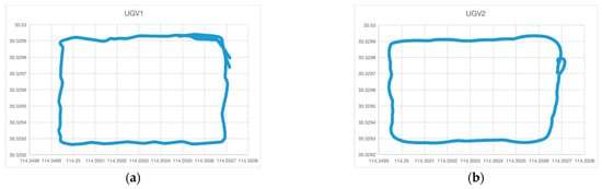 Trajectory diagram during unmanned vehicle testing: (a) UGV1 trajectory map; (b) UGV2 trajectory map.