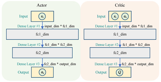 Deep deterministic policy gradient (DDPG) is a reinforcement learning algorithm based on policy gradients [27] that combines the ideas from Deep Q-network (DQN) and Actor–Critic (AC) framework and can be used to solve decision-making problems in high-dimensional continuous action spaces. The main idea is to use deep neural networks (actor network and critic network) to fit behavior strategy functions and state-action value functions, which are called policy networks and value networks, respectively.