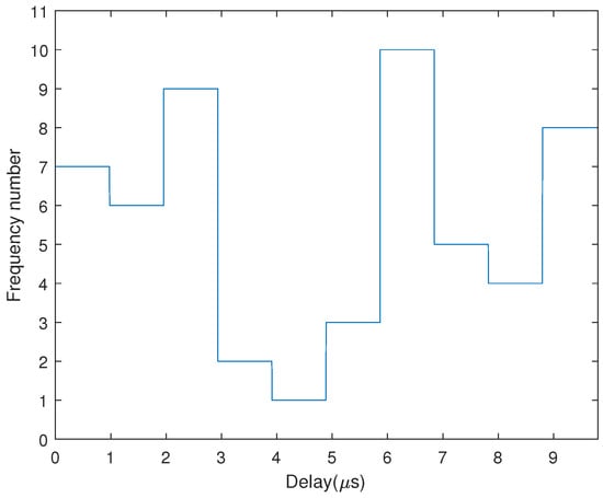 where denotes the total number of times that the i-th frequency of the subcarrier is used. is the sum of the number of times that each frequency point of the subcarrier is used. The ACF of the subcarrier with the frequency of the i-th hopping point can be represented by (). As the frequency of the subcarrier is fixed during the duration of a spreading code slice, denotes the subcarrier of the BOC signal with frequency . Furthermore, the ACF of the FH-BOC modulated signal is