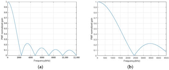 The normalized amplitude-frequency response of the PMF section. (a) Shows the normalized amplitude-frequency response in [0 kHz, 12,000 kHz]. (b) Shows the normalized amplitude-frequency response in [0 kHz, 4500 kHz].