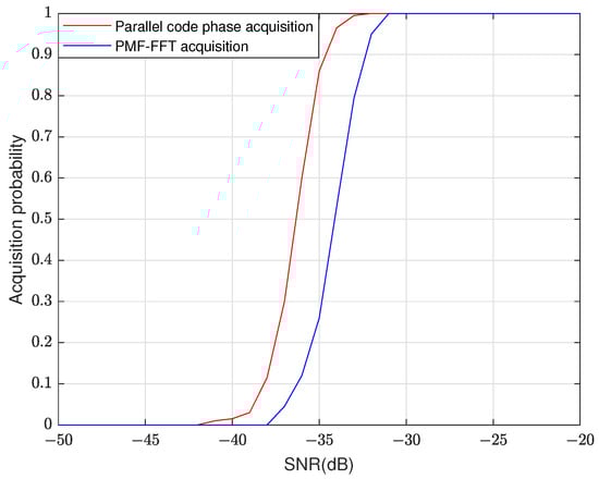 - The SNR loss of the parallel code phase acquisition algorithm is −4.3394 dB and that of the PMF-FFT acquisition algorithm is −6.3526 dB;