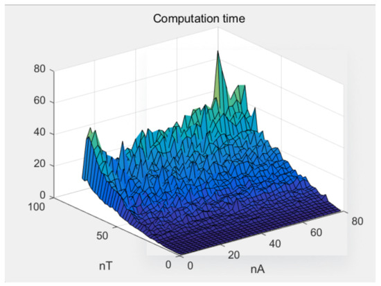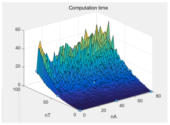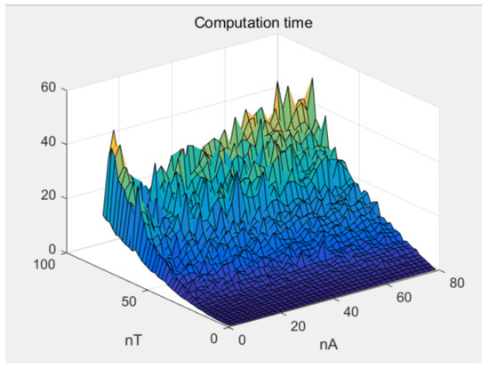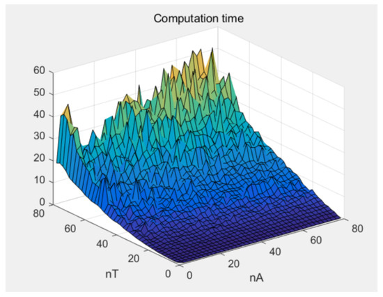 Computation time based on the nA = 10, nT = 20, k = 1000.