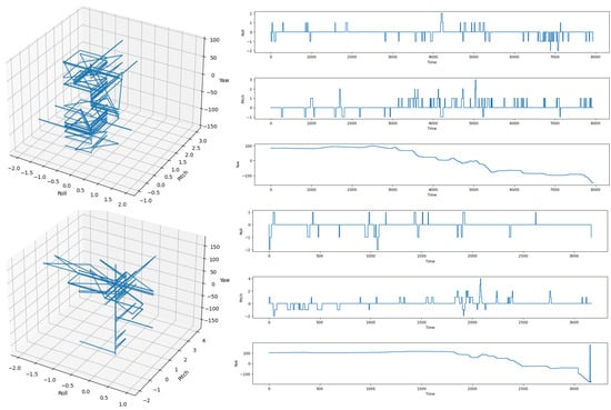 In case 1, when an unexpected disturbance affects one of the counter-clockwise propellers, the PID controller demonstrates significant roll, pitch, and yaw fluctuations, as shown in Figure 10.