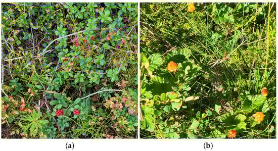 The geographical location of Ilomantsi creates unique environmental conditions that influence the growth and distribution of wild berries. The climate of the area is typically characterized by short, warm summers and long, cold winters, which affect the phenology and yield of wild berries [58]. During summer, extended daylight hours and relatively high humidity create favorable conditions for berry ripening. However, these same conditions also pose challenges for data collection, such as the need to manage varying light levels and potential interference from dynamic foliage.
