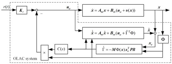The design of the adaptive control law is constructed based on the closed-loop system formed by the basic control law. Combining Equations (10) to (13), the state observer can be designed as follows: