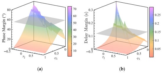 The impact of adaptive parameters on stability margin. (a) Phase Margin, (b) Delay Margin.