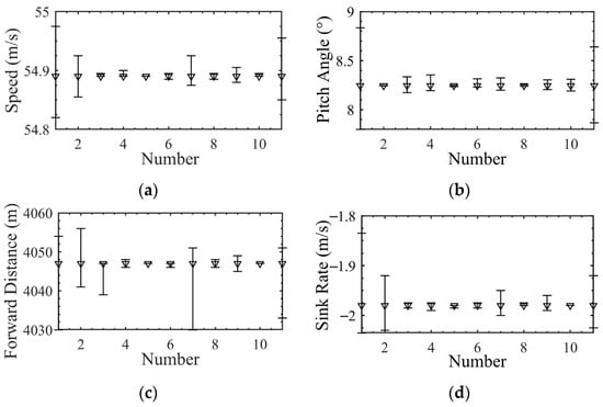 Figure 5 demonstrates the strong robustness of the designed landing control system, with all indicators meeting the design requirements. Specifically, variations in the lift coefficient, drag coefficient, and weight have notable effects on the index. Notably, speed and sink rate exhibit sensitivity to wind disturbances.