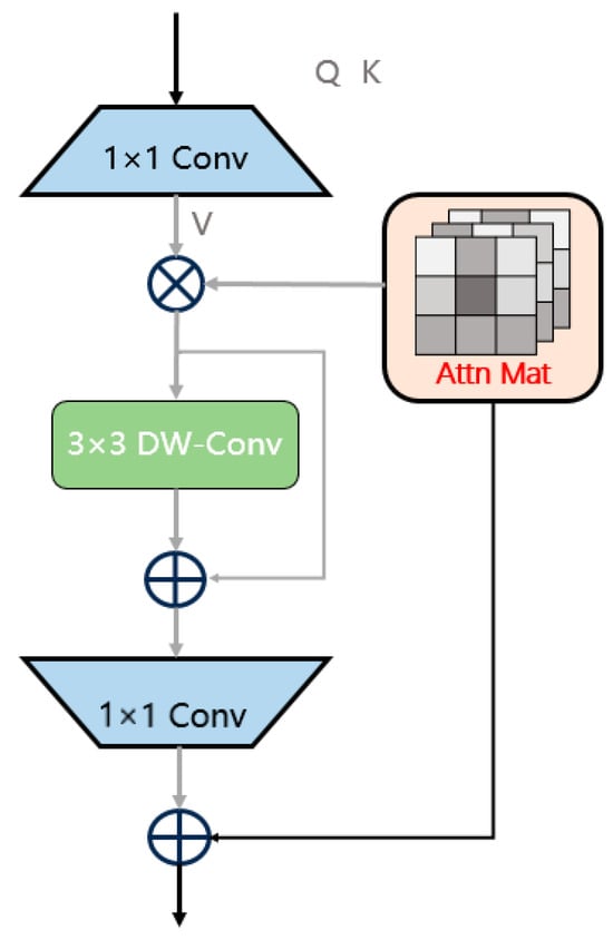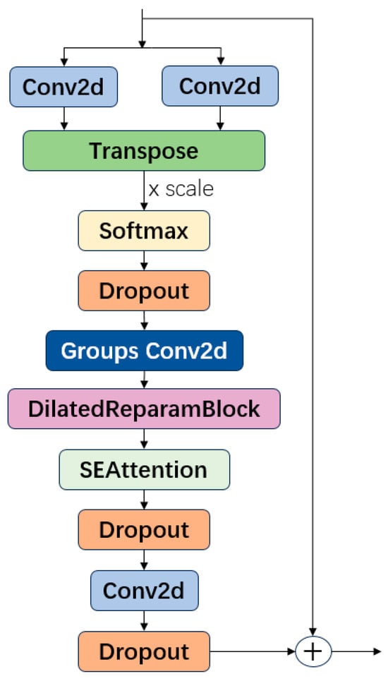 The main idea of the Inverted Residual Mobile Block (iRMB) [40] is to fuse lightweight CNN architectures and attention-based model structures (similar to ACmix) to create efficient mobile networks. By rethinking the components of inverted residual blocks (IRBs) [41] and transformers [42], iRMB achieves a unified perspective, thereby extending CNN’s IRB to attention-based models (Figure 6).