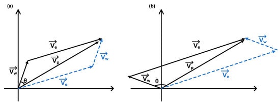(a) Schematic diagram of the actual work speed of the UAV in downwind condition. (b) Schematic diagram of the actual work speed of the UAV in headwind condition.