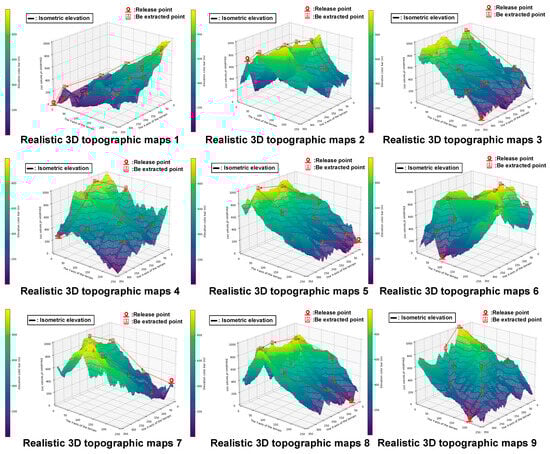 In this experiment, relevant tests were conducted in a real environment, and the geographic location of the UAV test site was 34°35′–40°19′ N latitude and 110°15′–116°27′ E longitude. Its geographical characteristics are a deciduous broad-leaved forest zone in the North China Plain in the east, and a forest-steppe zone and a steppe zone in the Loess Plateau in the west; there are obvious differences in the characteristics of the vertical zones of vegetation and soil on both sides. Due to its high density of forest vegetation coverage and more complex geomorphological environment, it has become an ideal test flight site for UAVs. The actual scene and flight processes are shown in Figure 5.