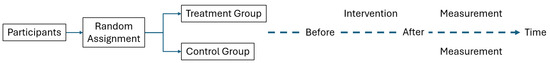 The implemented experimental methodology is a post-test-only control-group design. This is still a true experimental design rather than the similar static-group comparison design, which is a quasi-experimental design. This design allows for causal attribution to the treatment, which, in this case, is exposure to a computer-based drone flight simulator. The measurement was then performed on both the treatment and control group (not exposed to a computer-based drone flight simulator) when they were required to fly a real drone outside in the real world. The experimental design is illustrated in Figure 3. Specifical details will be explained throughout this section.