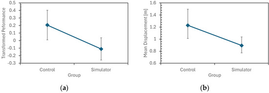 The null hypothesis (H0) for this research was that, when controlling for task loading, there will be no significant difference in mean relative displacement between control and intervention groups. Conversely, the alternative hypothesis (H1) posited that the intervention group would have lower mean relative displacements, indicating an improved performance once the influence of subjective task loading is considered. The null hypothesis is