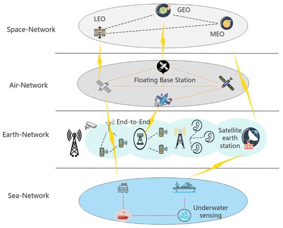 - Sharif, S.; Zeadally, S.; Ejaz, W. Space-aerial-ground-sea integrated networks: Resource optimization and challenges in 6G. J. Netw. Comput. Appl. 2023, 215, 103647. [Google Scholar] [CrossRef]