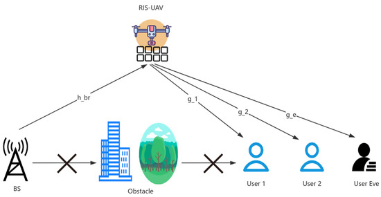 - Wang, D.; Zhao, Y.; Lou, Y.; Pang, L.; He, Y.; Zhang, D. Secure NOMA based RIS-UAV networks: Passive beamforming and location optimization. In Proceedings of the GLOBECOM 2022—2022 IEEE Global Communications Conference, Rio de Janeiro, Brazil, 4–8 December 2022; pp. 3168–3173. [Google Scholar]