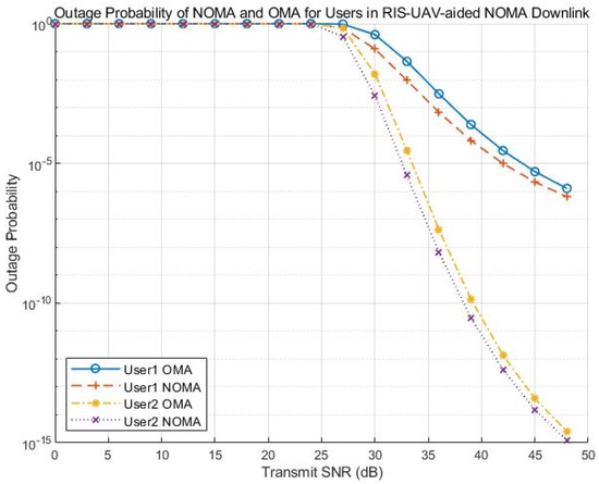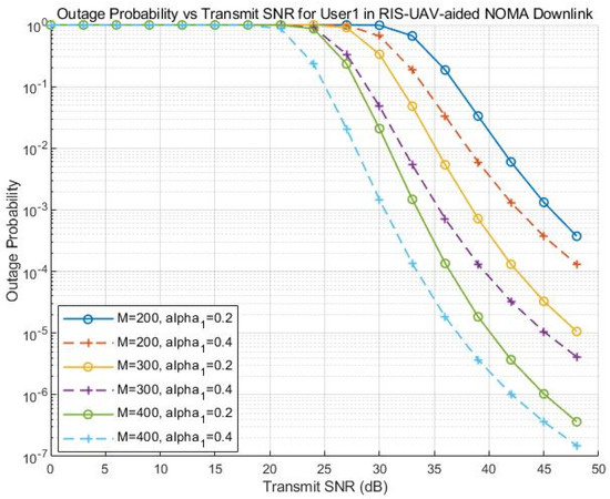- Through numerical simulation, then explore the effect of the Rician factor, the number of RIS elements, etc., on the outage performance of the system, and compared with the OMA system, the effect of NOMA technology on the performance of the communication system is verified.