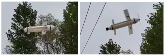 After calibrating each motor and the flight control system of the prototype, we advanced the electric actuators to extend both the front and rear wings. We then began assessing the prototype’s flight feasibility, initiating the verification process. The flight sequence of the prototype is illustrated in Figure 27. The air cruising speed is about 61 km/h, which falls in the cruise speed range [10, 30] m/s analyzed in the simulation, as shown in Figure 11.