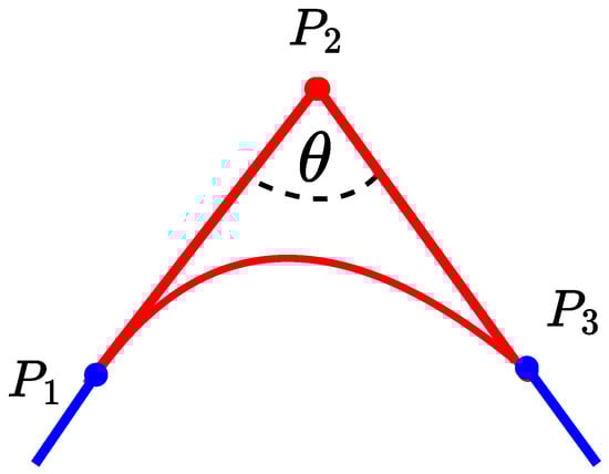 The path generated by the proposed algorithm consists of waypoints; however, the path segments connecting these waypoints are composed of linear segments, making it challenging for a specific UAV to track them smoothly. Furthermore, making turns consumes a significant amount of energy for a UAV. Therefore, it is necessary to enhance the path by making it smoother in order to ensure suitability for the UAV. The primary objective is to generate an energy efficient path that adheres to the maximum curvature constraint of the UAV. To achieve this objective, we apply a quadratic Bezer curves to the generated segments, smoothing them out and reducing the impact of turns on energy consumption. Figure 3 shows the control points and provides a schematic representation of the path-smoothing strategy.