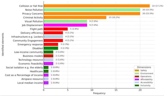 - Social Isolation, e.g., the Elderly (0.8%): There is concern in the literature that the use of drones for delivery may exacerbate social isolation trends, particularly among older participants [61];