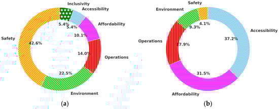 - Disability (2.3%): The literature highlights considering accessibility for disabilities [63] to meet the needs of all individuals regardless of physical ability;