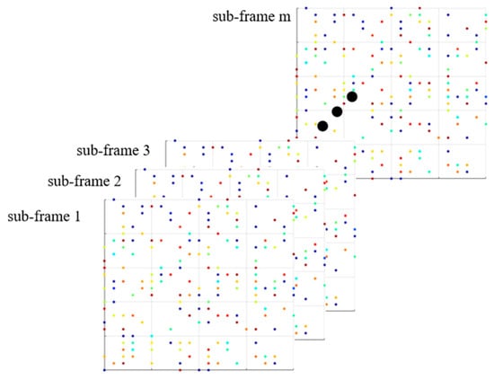 It can be considered that corresponds to and should be retained, while any peaks that do not successfully match can be considered false alarms and subsequently eliminated. The matching range is generally set at 2–3 cells, which not only ensures that the target is preserved, but also minimizes the occurrence of false alarms. Consequently, the matrices of matching peak information and of adjacent sub-frames are obtained, resulting in a reduction in peak information vectors. This preliminary reduction in the false alarm rate is achieved, thereby decreasing the computational effort required for subsequent steps.