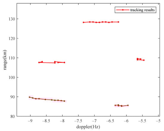 p represents the smoothing coefficient, which assumes a value within the range of 0 to 1. For points that lack association with any existing trace, these are designated as new starting point trace. As shown in Figure 6. Through the tracking process, the target points that contribute to a stable trace are preserved, resulting in the formation of a target track. Conversely, scattered points that do not contribute to a coherent track are eliminated, thereby reducing false alarms and enhancing target detection capabilities. The purpose of target tracking is to further eliminate scattered false alarm points that do not contribute to a defined track. However, the current methodology exhibits limitations in robustness when confronted with complex moving targets. Future research should focus on exploring more advanced and robust track correlation technologies to improve the performance of the algorithm.