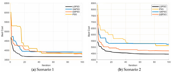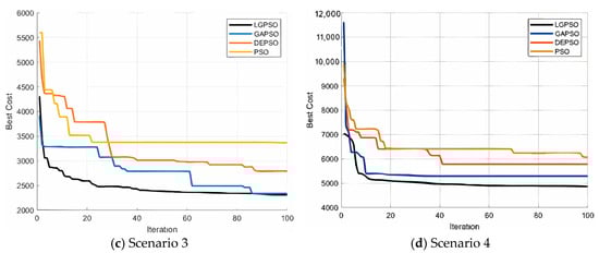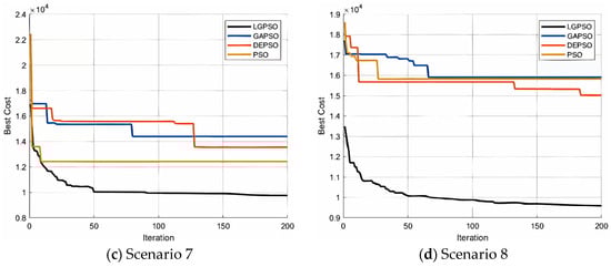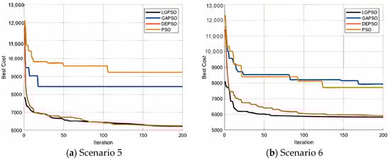 In order to comprehensively evaluate the performance of the LGPSO algorithm, this paper makes an in-depth comparison with the PSO and variant PSO algorithms widely used in related fields, including the genetic particle swarm algorithm (GAPSO) [40], the differential evolutionary particle swarm algorithm (DEPSO) [41], and the primitive particle swarm algorithm (PSO).