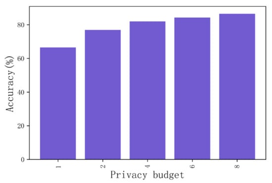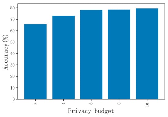 In this section, we evaluate the role of the CP-FL mechanism in balancing privacy and availability by introducing a differential privacy mechanism. In the scenario where federal learning is combined with differential privacy, choosing the appropriate privacy budget is a key issue. It is a parameter used to quantify the strength of data privacy protection. A small value of means greater privacy protection but at the expense of model accuracy; a large value of reduces the level of privacy protection, but it may improve model performance. In this thesis, we adjust the -value through many experiments and observe the change in the model performance under different settings.