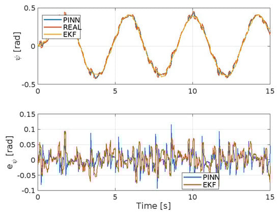 Figure 8. Yaw angle ψ and corresponding error.