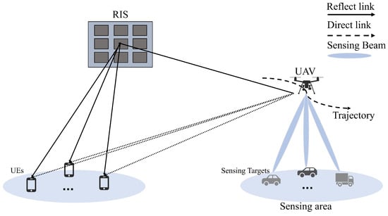 - Wu, Z.; Li, X.; Cai, Y.; Yuan, W. Joint Trajectory and Resource Allocation Design for RIS-Assisted UAV-Enabled ISAC Systems. IEEE Wirel. Commun. Lett. 2024, 13, 1384–1388. [Google Scholar] [CrossRef]