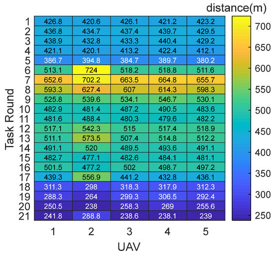 Additionally, the flight distance for each round of the UAV formation task is shown in Figure 4.