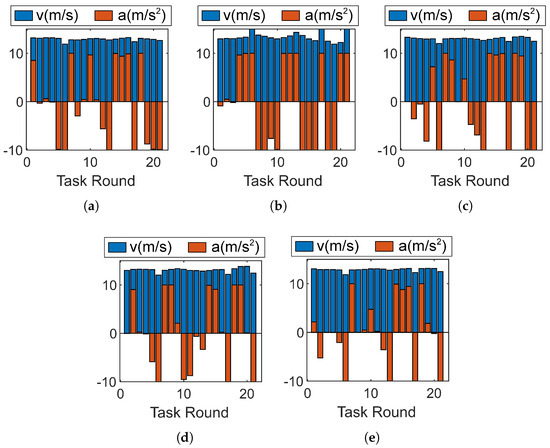 The changes in speed and acceleration for each UAV during every task round are determined, as shown in Figure 6.