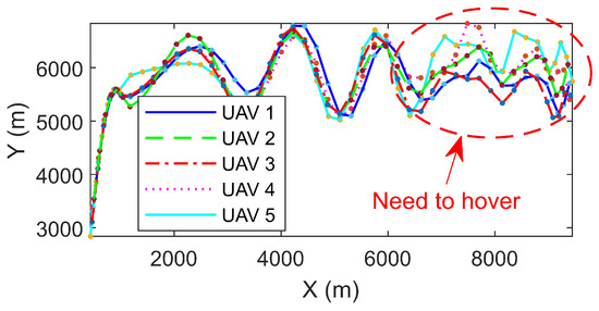 From Figure 9, it can be observed that as the degree of trajectory dispersion increases, some UAVs in the formation begin to utilize hovering to ensure coordinated arrival. This further demonstrates the effectiveness of the related model and solution algorithm.