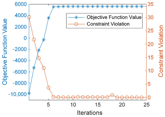To verify the performance of the solution algorithm, the convergence of the objective function and the constraints during the solving process was statistically analyzed, with results shown in Figure 10.