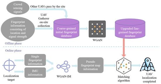 - In an indoor environment where UAVs are operating, the 3D spatial volume is divided into small cubic cells, with each cell serving as a collection point for fingerprint data. The enhanced fingerprint database generated by WGAN is then used in the UAV localization system. In addition to using the RSS value of Wi-Fi, it relies on the inertial measurement unit (IMU) system of the UAV to revise 3D position coordinates in localization, which avoids the defect that visual localization is easily blocked in indoor environments.