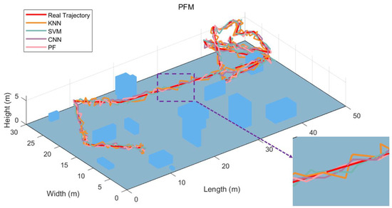 | Description | Signals generated by Wi-Fi routers | Wi-Fi signal amplitude | Positions in meters | Size of the indoor environment | RC is 1 × 1 × 1 | Number of initial fingerprint RCs | Number of RCs after WGAN upgrade | UAV’s speed | Number of classic matching algorithms | Time interval for UAV trajectory |