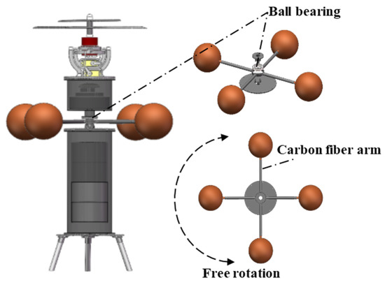 A novel coaxial HAUV system is proposed, as shown in Figure 1. This coaxial HAUV can pass smoothly between air and water, and it can be operated from a support ship or deployed by aircraft. The HAUV is designed to operate in two main modes. When it is equipped with an auxiliary float, it can assume the role of a drifting buoy; at this time, it has enough buoyancy to float freely without additional energy consumption to maintain the floating state, and it can also carry out dynamic positioning on the water surface to perform the task of formation array. When the float is discarded, the HAUV is in a negative buoyancy state; at this time, it can dive underwater and perform underwater maneuvering through the power system, perform underwater sampling and underwater maneuvering tasks, and, when necessary, repeatedly perform cross-media operations requiring entry into and exit out of the water.