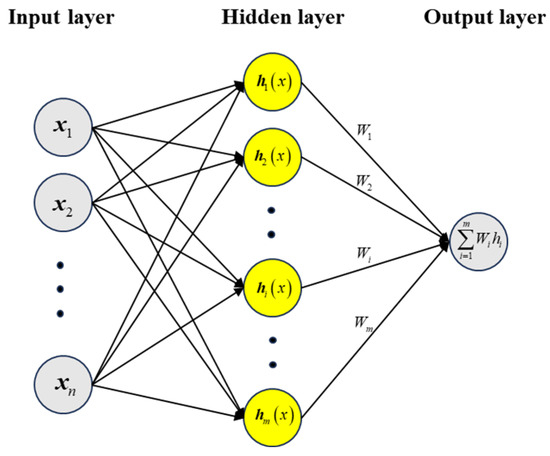 where W = W 1 , W 2 , , W m T  and  x = x 1 , x 2 , , x n T  are the weight and input vectors; m  and n  indicate the numbers of nodes and inputs; ε  and ε ¯  denote the estimation error ( ε is sufficiently small under the condition of the ideal weight parameter) and its upper bound; and h ( x ) = [ h 1 ( x ) , h 2 ( x ) , , h m ( x ) ] T is a Gaussian basis function vector defined as follows: