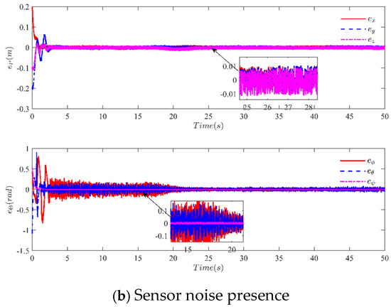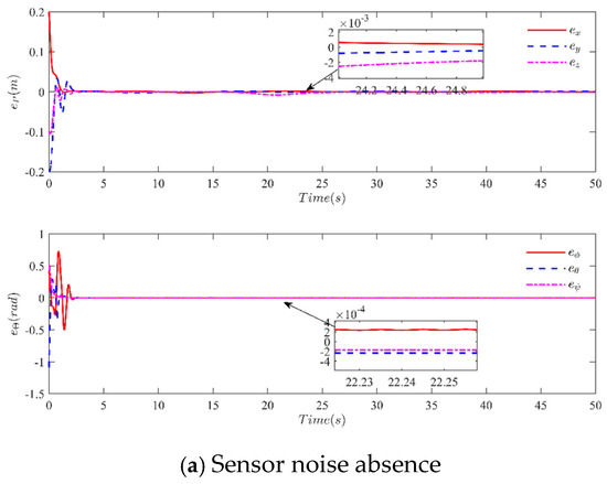 where, s , c , and t denote the sine, cosine, and tangent functions, respectively. J is the transformation matrix. J 1 is the transformation matrix of the position loop and J 1 is an orthogonal matrix, so it satisfies J 1 1 = J 1 T . J 2 is the transformation matrix of the attitude loop. Thus, the kinematic equations of the HAUV can be written as follows [50]: