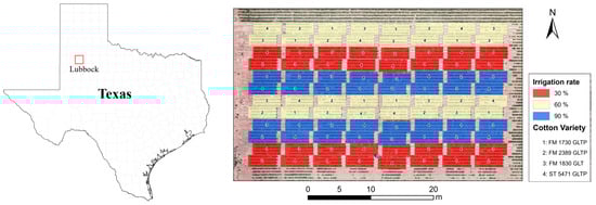 - Sharma, B.; Ritchie, G.L. High-throughput phenotyping of cotton in multiple irrigation environments. Crop Sci. 2015, 55, 958–969. [Google Scholar] [CrossRef]