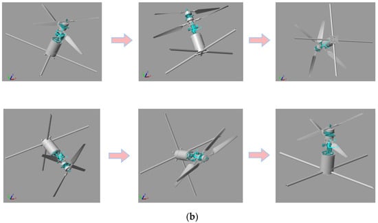 Rotation diagram of the quadrotor model: (a) state 2 actual motion diagram, and (b) state 3 actual motion diagram.