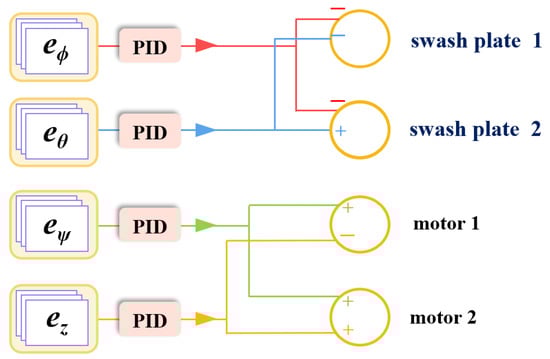 In recent decades, rotorcraft UAVs have been widely used in military and civilian fields [1,2,3]. They have various remarkable capabilities in routine and dangerous tasks, such as intelligent transportation and emergency rescue. Under certain circumstances, they can replace manned rotorcraft UAVs and reduce the cost of air transportation [4,5]. Market research shows that the global rotorcraft UAV logistics market is expected to grow from USD 5 billion in 2023 to USD 15 billion in 2028, with an average annual growth rate of 24% [6]. In agriculture, rotorcraft UAVs are used for accurate monitoring of crop health and pesticide spraying [7]. In addition, an international defense and security market research report points out that the global military rotorcraft UAV market was worth USD 14.14 billion in 2023 and is expected to reach USD 35.6 billion by 2032. It will grow at a compound annual growth rate of 14.10% during the forecast period from 2024 to 2032 [8]. These data clearly indicate that rotorcraft UAVs play an important role in improving work efficiency and effectiveness, thereby driving the rapid growth of various related markets. Quadrotor UAVs and dual-rotor coaxial UAVs have unique application advantages and broad development prospects in the aviation field. Quadrotor UAVs control the attitude and position of the rotorcraft UAV by adjusting the rotational speeds of the rotors driven by four independent motors, which have high requirements for the accuracy and response speed of the flight control system. Compared with quadrotor UAVs, dual-rotor coaxial UAVs adopt a design with the upper and lower rotors rotating in opposite directions on the same axis, effectively eliminating the torque generated by a single rotor. However, its stability and safety highly depend on the precise control of the flight control system. In recent years, the research on the flight control stability of rotorcraft UAVs has always been an important research direction [9], especially for non-standard rotor UAVs such as tiltrotor UAVs [10,11]. The flight control stability of these rotorcraft UAVs is a major problem faced by scientific researchers.